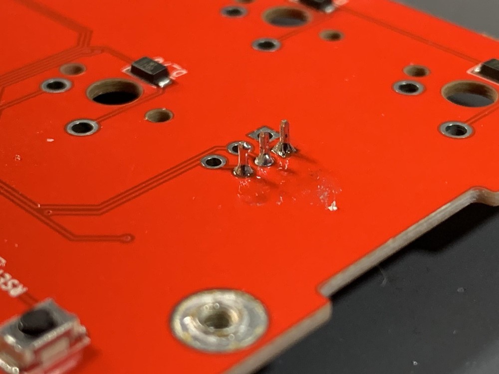 Using QMK Toolbox, flash the HoodrowG firmware file found above. In order to easily enter bootloader mode, press the black reset button found on the underside of PCB, directly opposite the daughterboard.