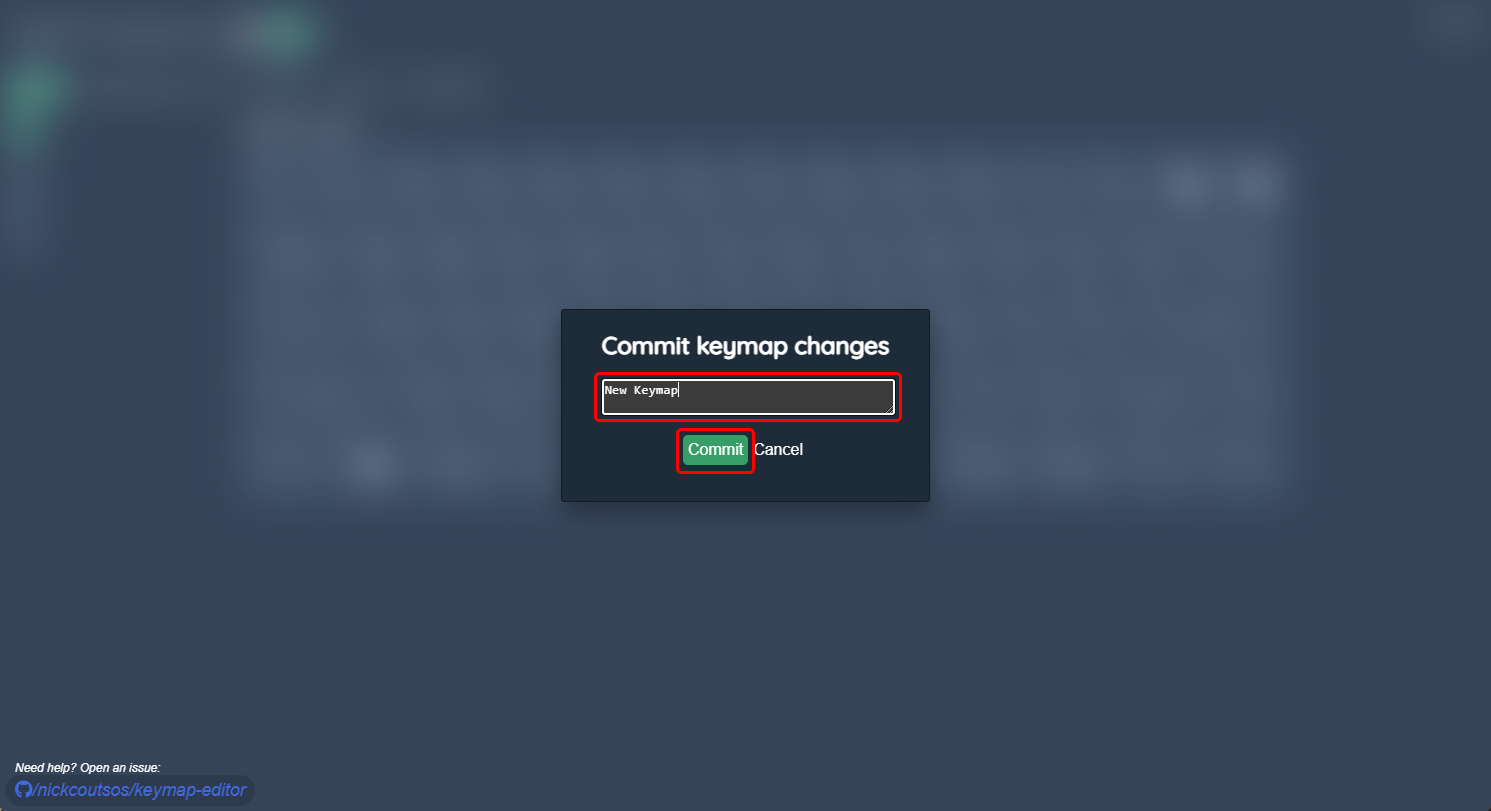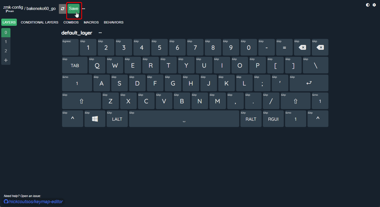 Once you have finished making your keymap changes, press the save button. This will apply the keymap you have just created to your GitHub repo.