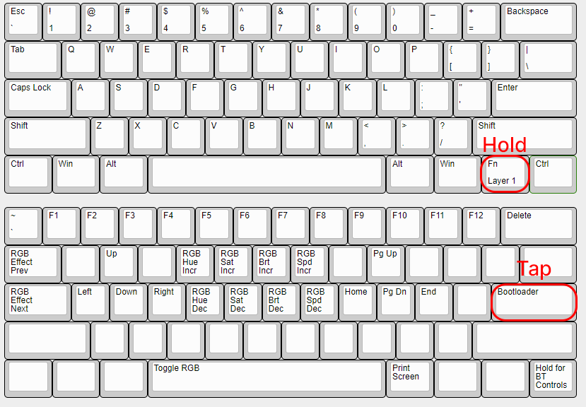 - Let's start by putting the PCB into bootloader mode. By doing this, we will allow the PCB to receive the new firmware file. To enter bootloader mode, you can either double press the reset button on the bottom of your PCB while it is plugged in, or by hitting the bootloader keyset combination