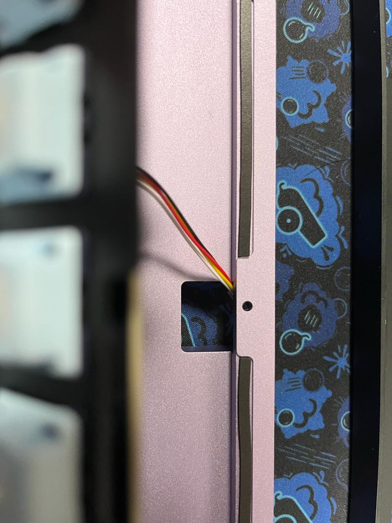 Rest your PCB and plate assembly on the bottom case, ensuring that the JST cable goes through the hole meant for the accent piece.