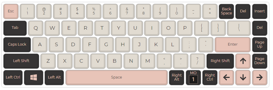 * | LCTRL | LGUI | LALT | FN | SPACE | SPACE | LEFT | DOWN | RIGHT | SPACE | SPACE | FN | RALT | RGUI | RCTRL |