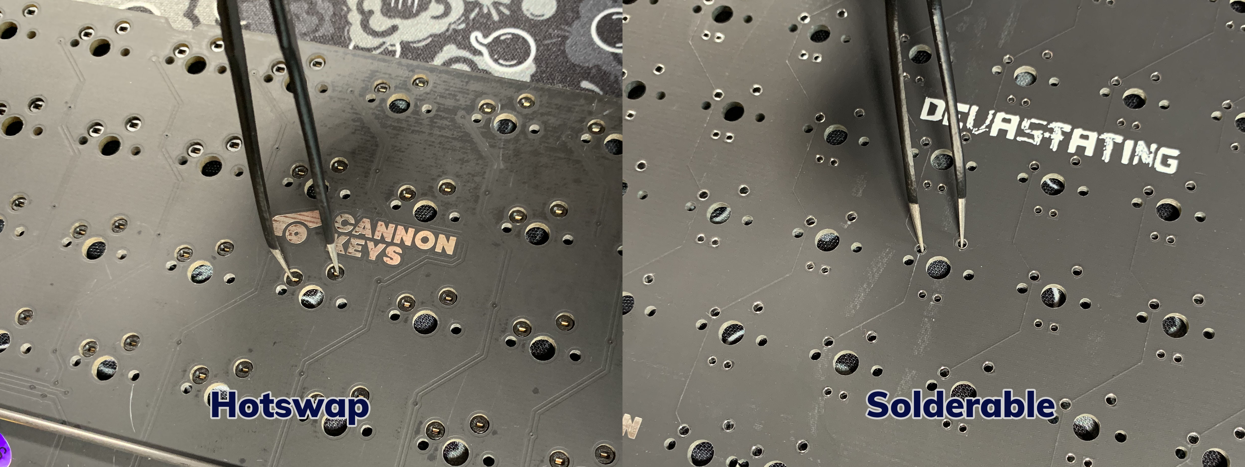 Regardless of manufacturer, price, or experience, it is always recommended to test your PCB before doing anything else. This is commonly done by shorting (connecting) the two switch pin pads using metal tweezers. It is recommended to use a keyboard tester while doing this, to make sure everything is triggering correctly. If you’re using VIA, there is a keytester built-in.