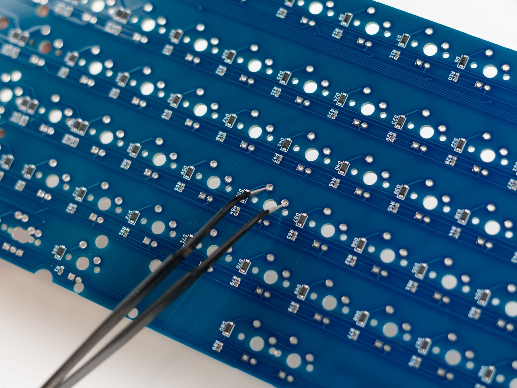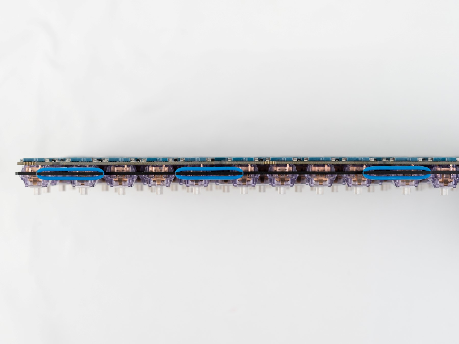 Hotswap Users - To avoid damaging your sockets/PCB, lay the PCB flat on your deskmat or table while pushing in switches. Alternatively, you can support the sockets from the back of the PCB with your finger while assembling.