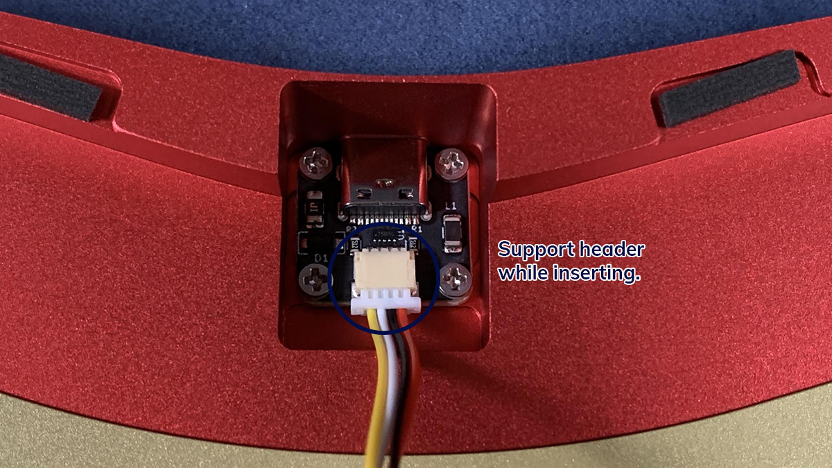 4. Next, attach the JST cable to the header on the PCB, making sure to support the header.
