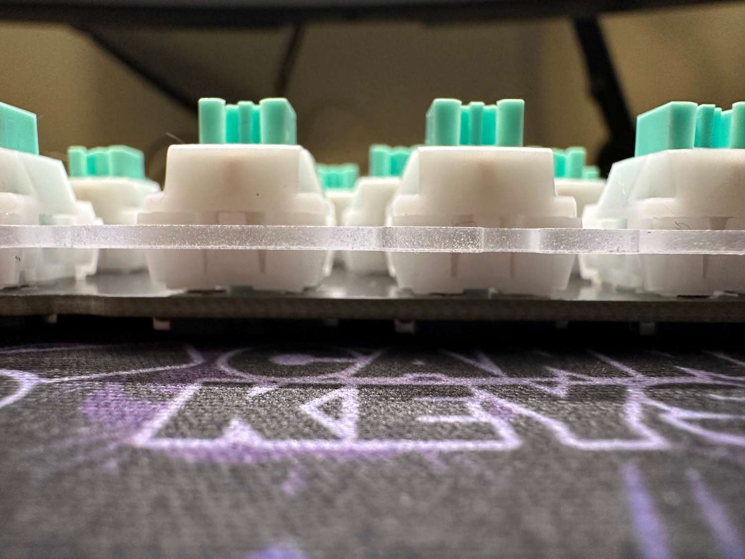 Line up the plate over the PCB, and start pushing the switches in one by one. Use the video below for a tip on doing this safely and smoothly.