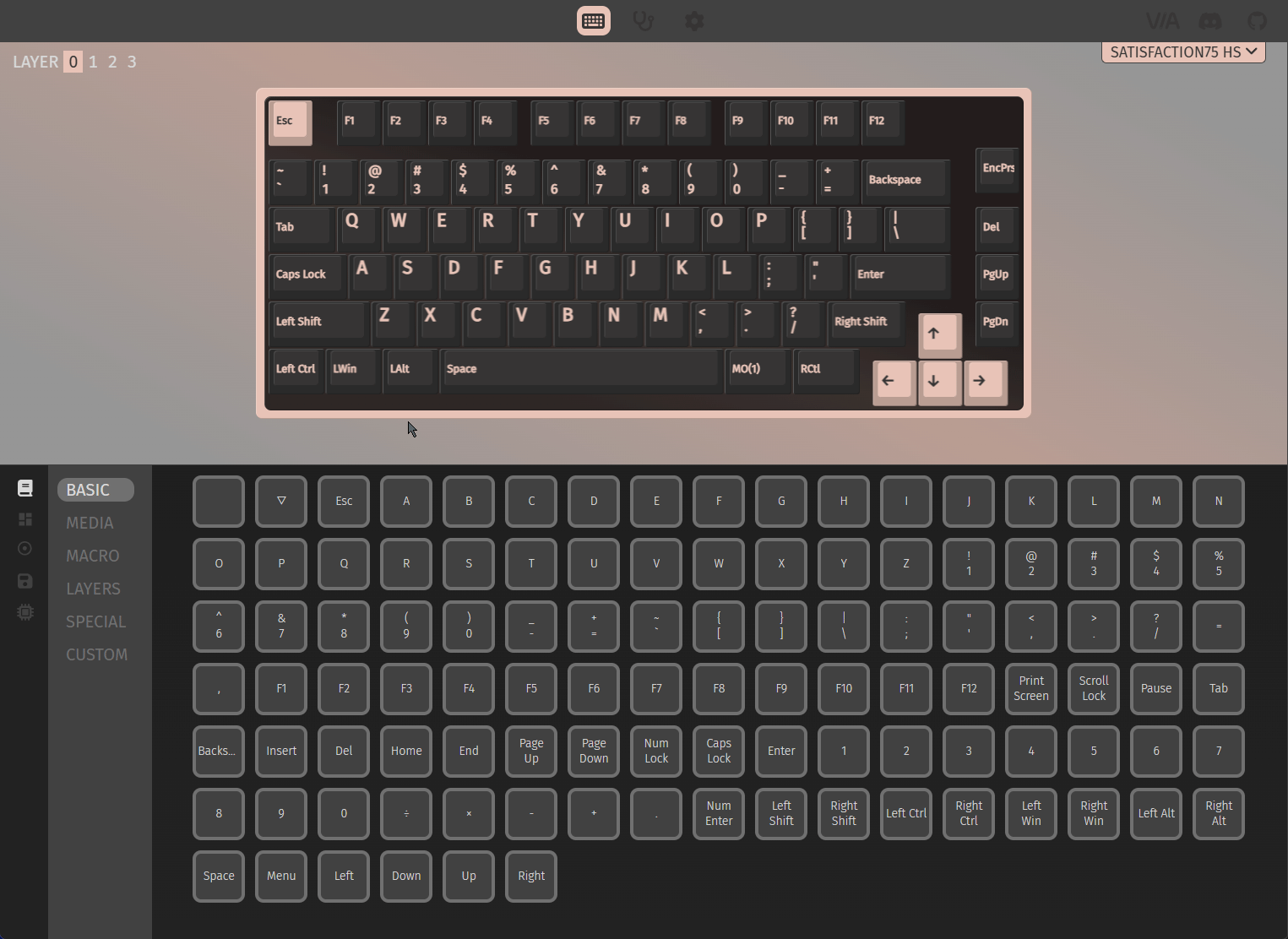 The default keymap for the Sat75 X hotswap PCB