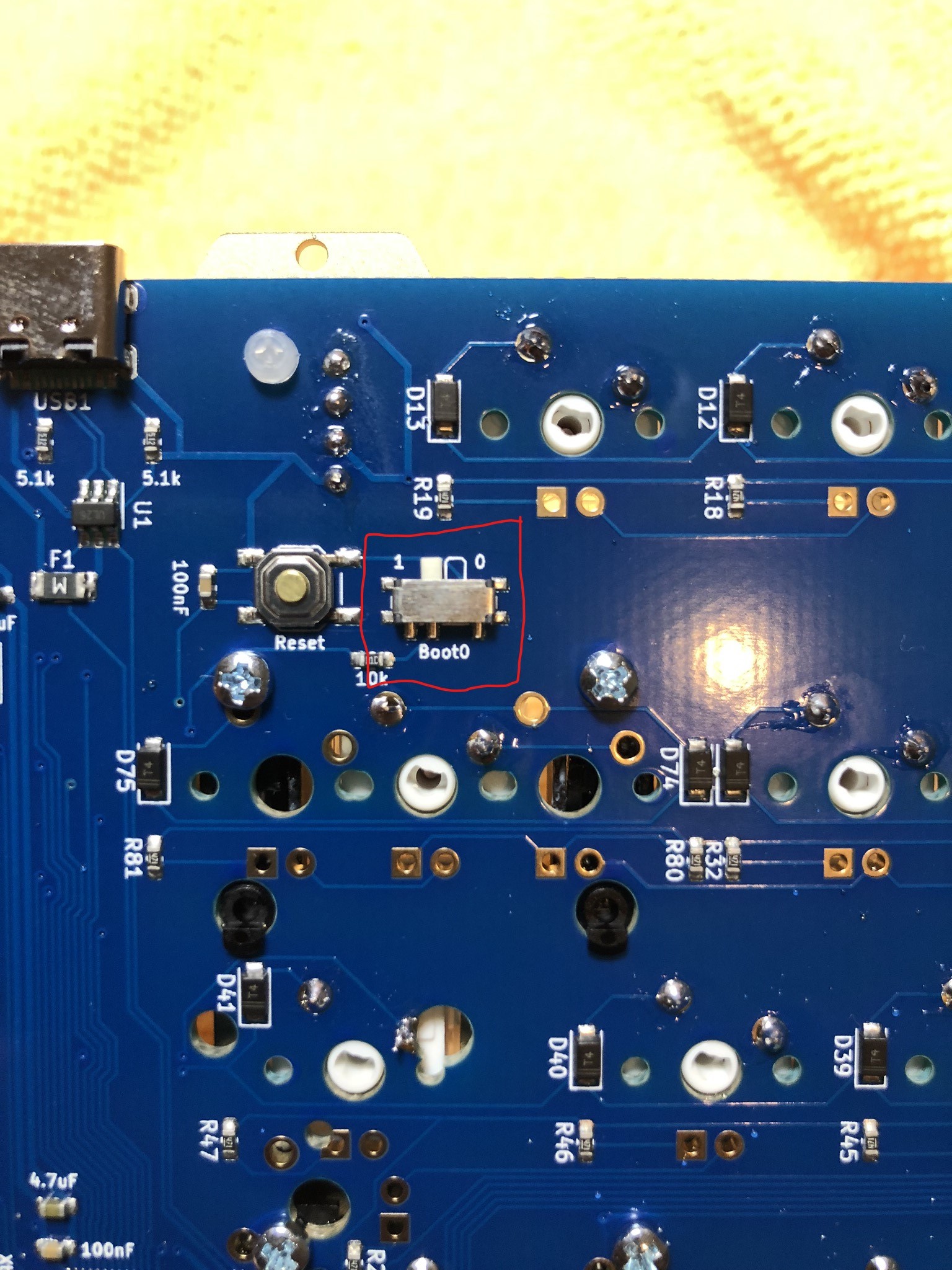 - Change the switch to "1" on the PCB