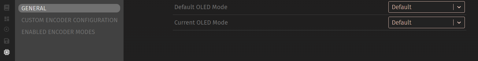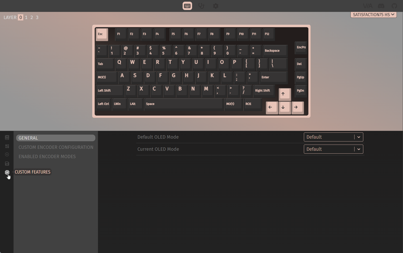 From there, you can control the enabled encoder modes and default OLED mode. If you're using the stock Sat75 X firmware the off position will load in the WPM screen.