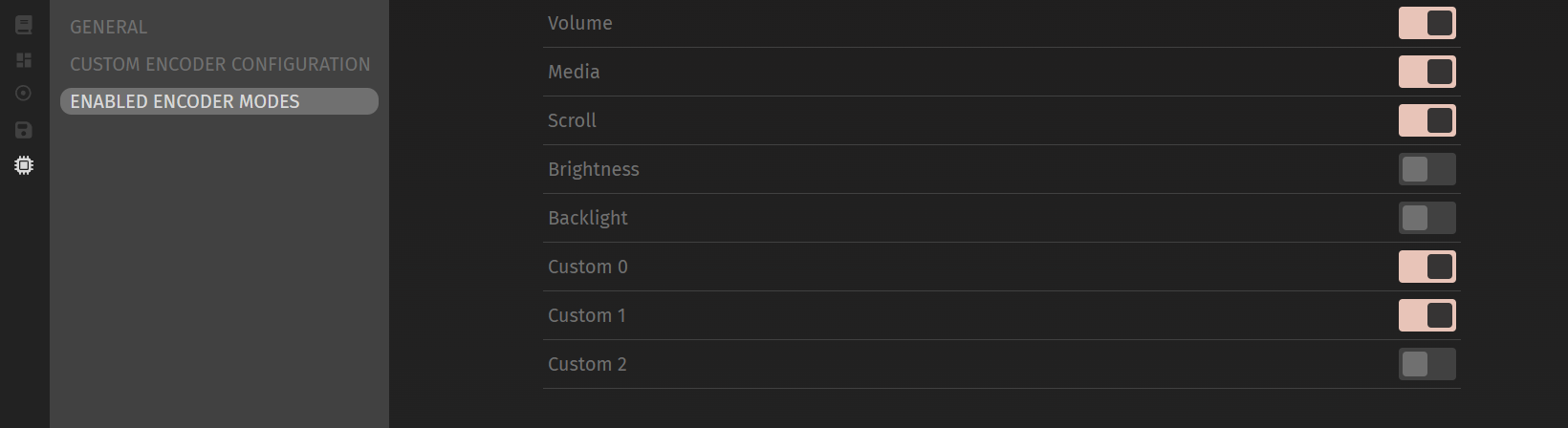 Each box controls a different behavior in the custom encoder mode, and can be defined with a QMK keycode.