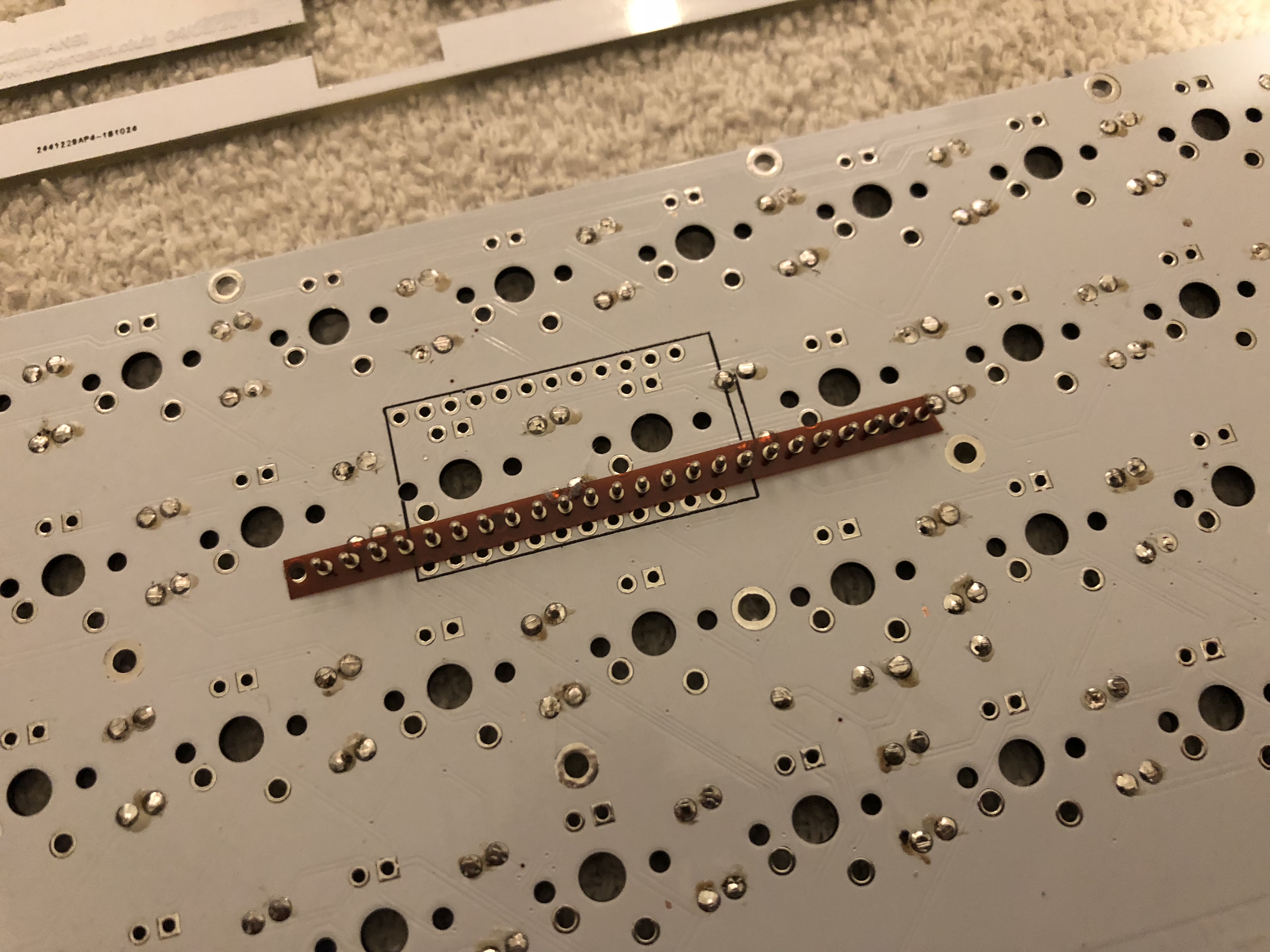 - Flip your PCB back around, making sure the sockets stay in their holes.